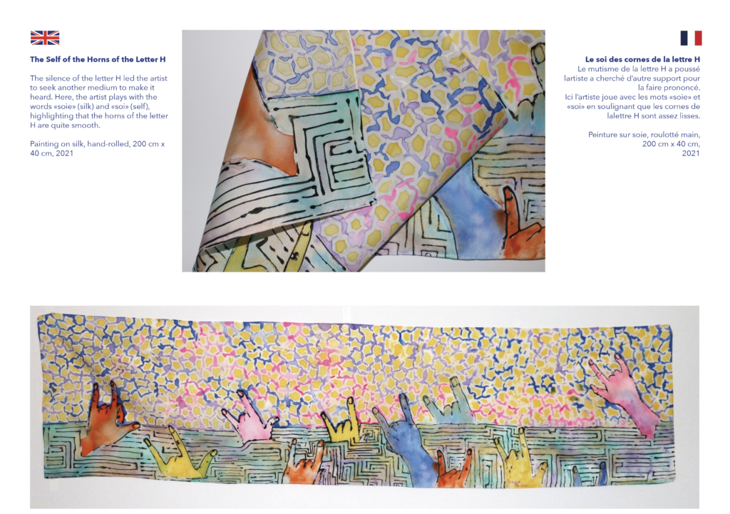Stella Polare Artist Lettre H - La Minotaure de l'alphabet français Chaque carré représente le texte sur les libertés des Constitutions des différents pays avec le motif « H comme Homme » entrelacés Les enfants - les fleurs de la vie Projet Kaukokaipuu Instinct maternel