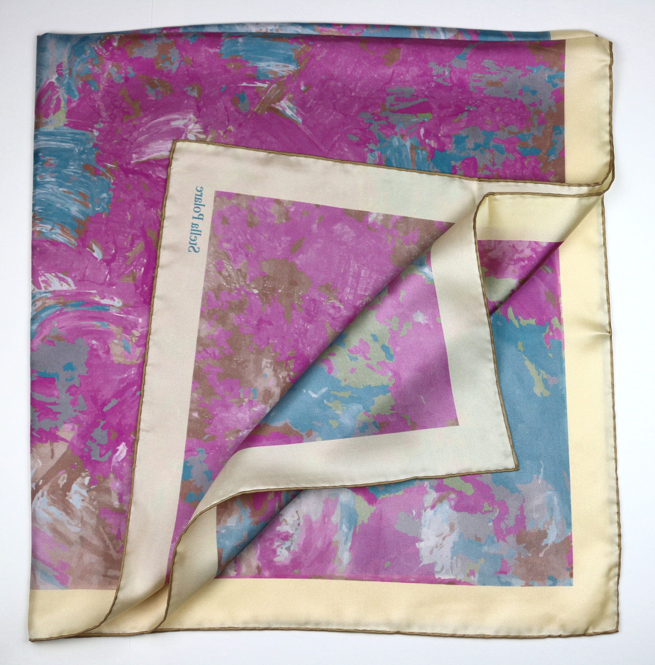 Technical description : 100% silk, scarf size 90×90 cm, designed in Paris, printed and hand rolled in Italy, with love and care.