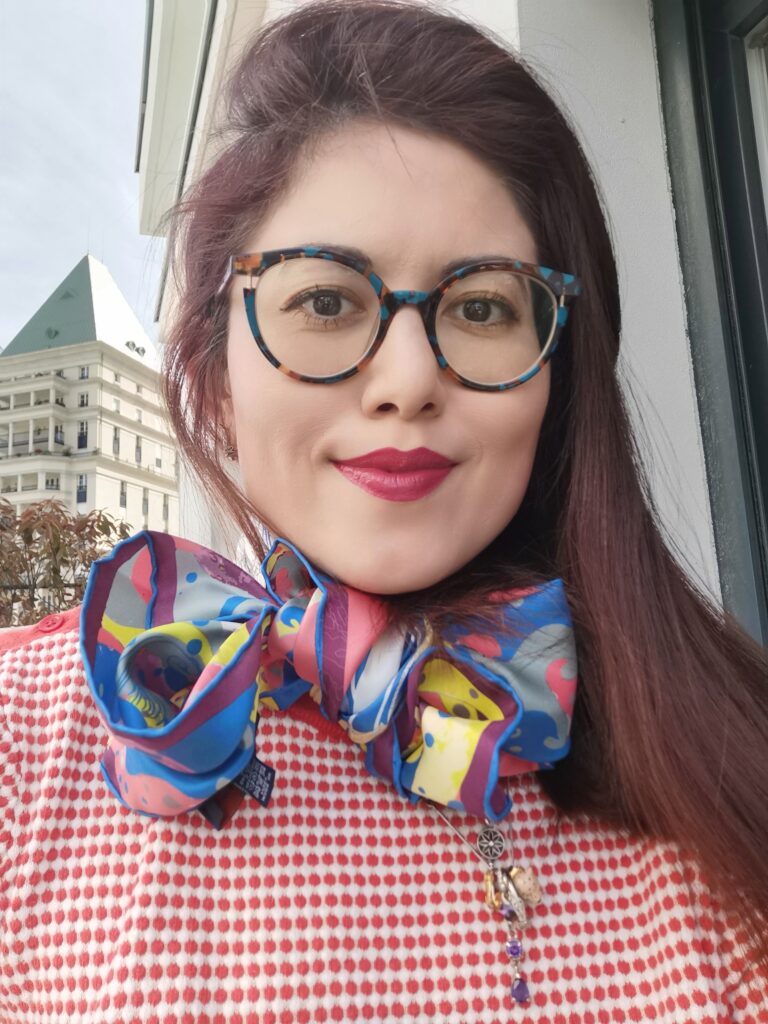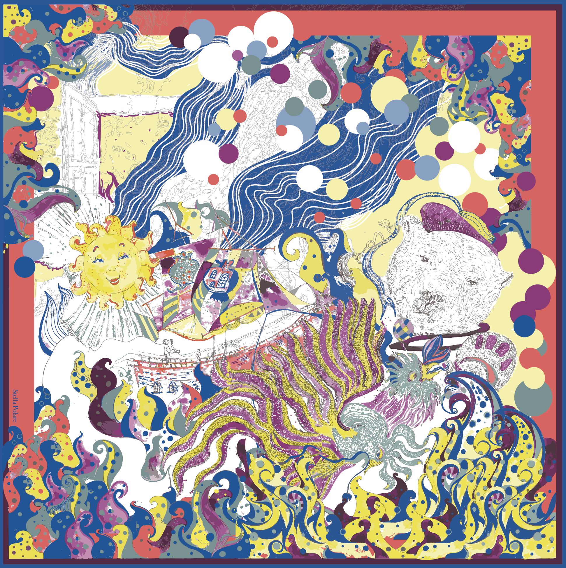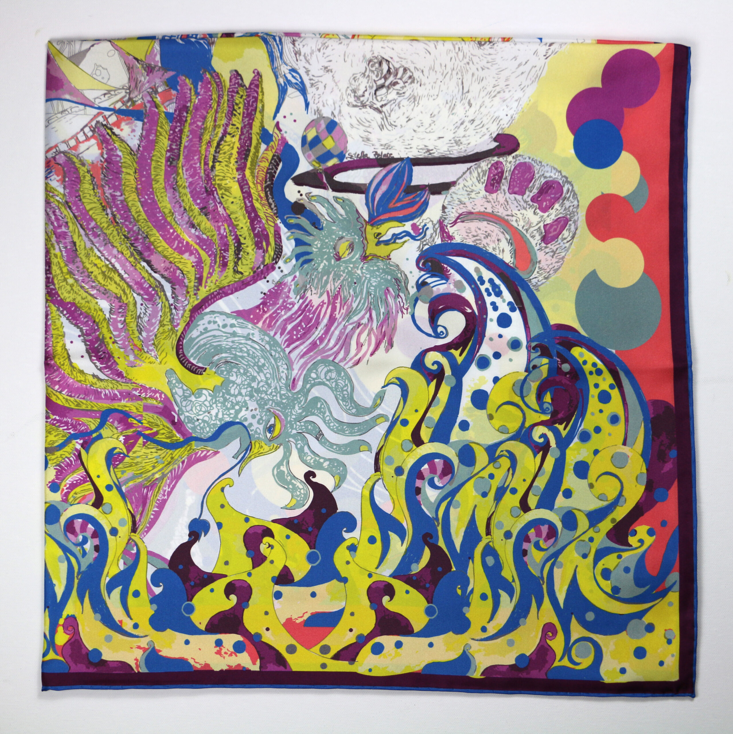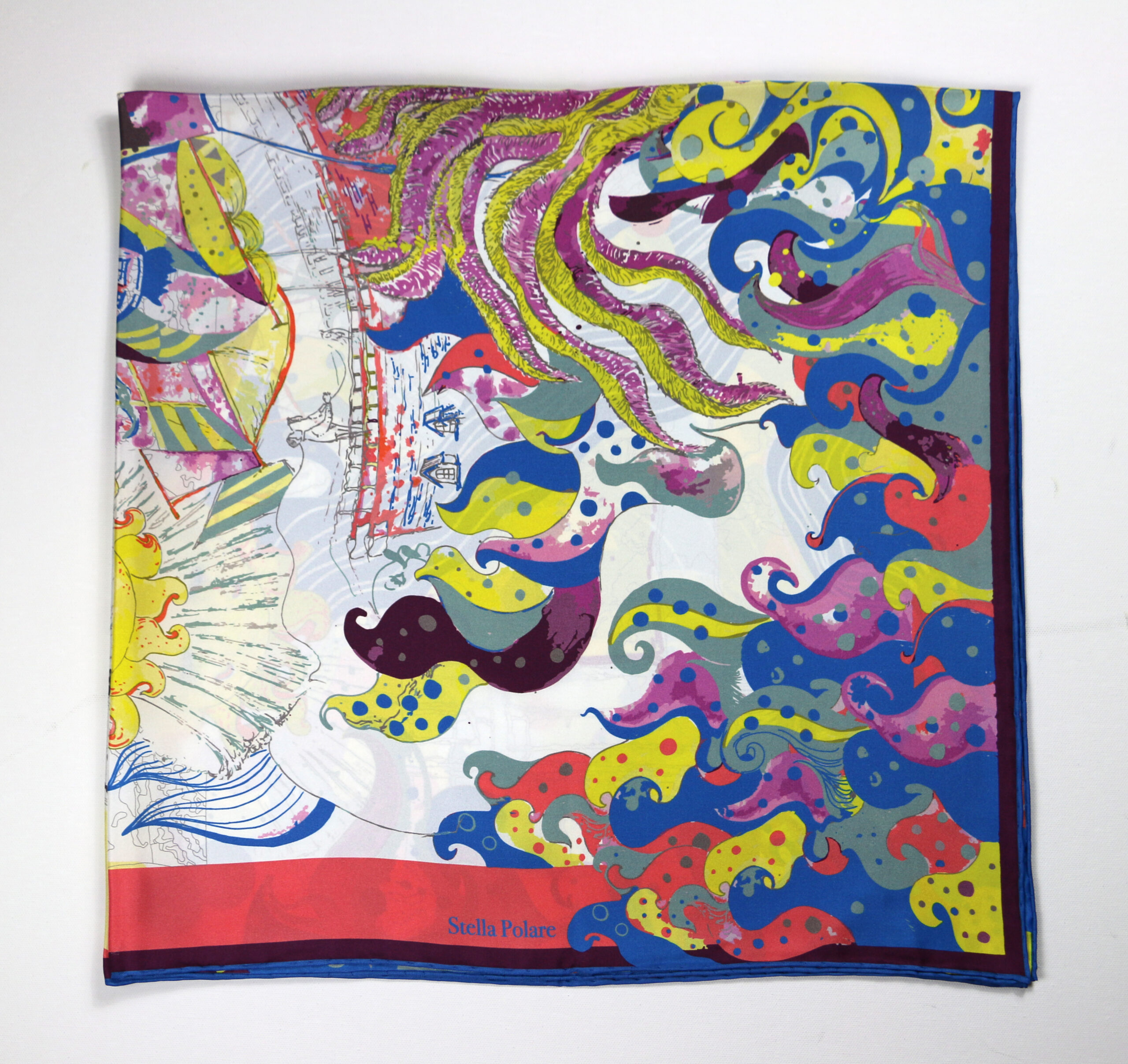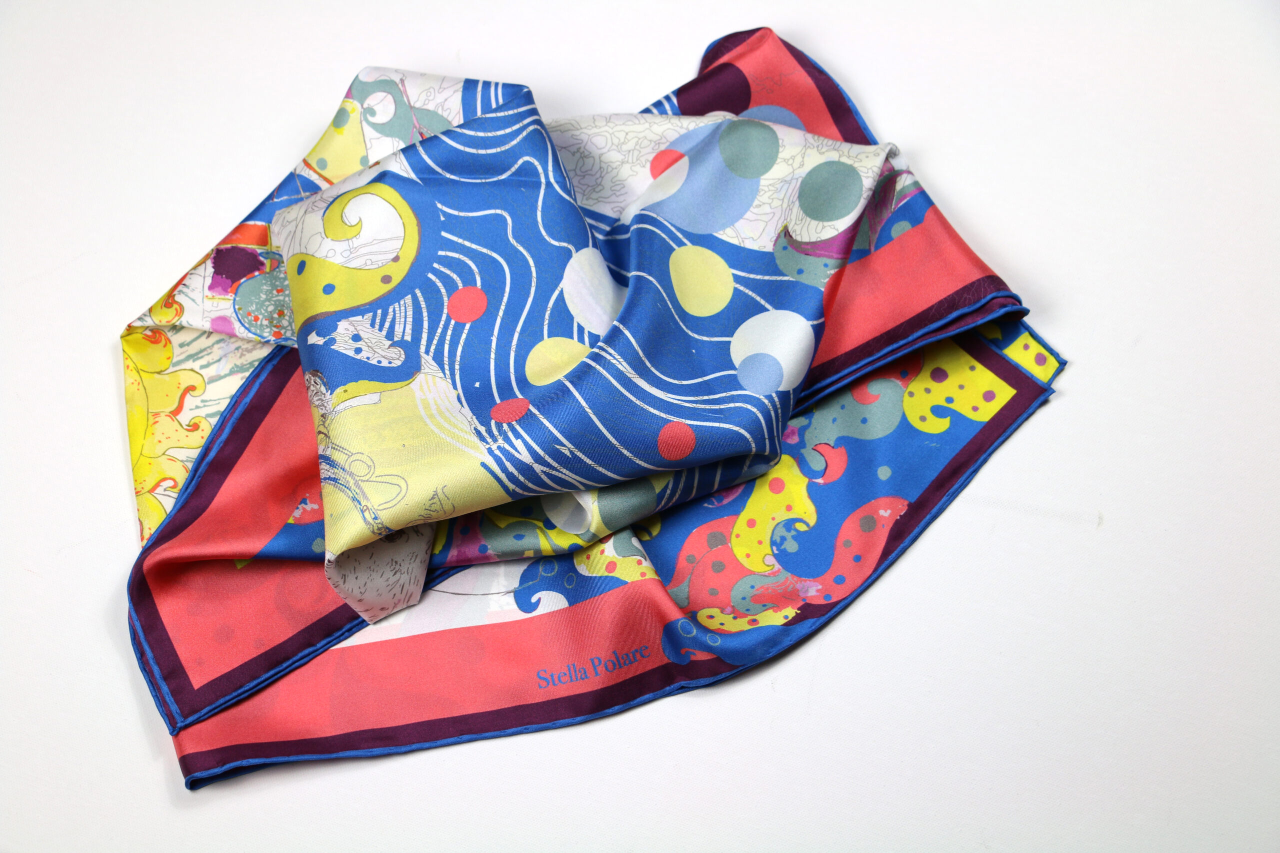 Technical description : 100% twill silk, scarf size 90×90 cm, designed in Paris, printed and handrolled in Italy, with love and care.
