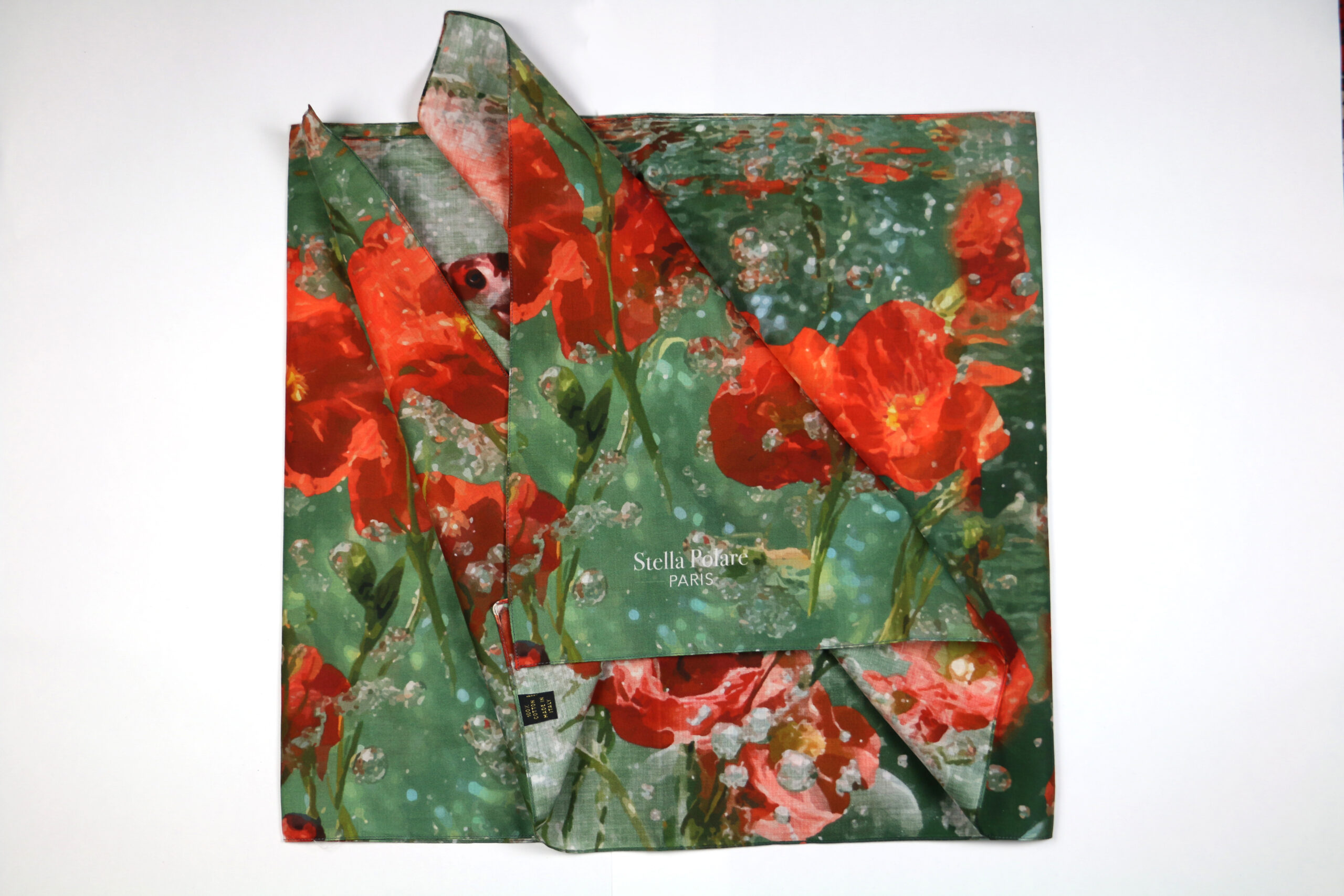 Cotton Scarf “Poppy N4” – Red & Green, Exclusive Print