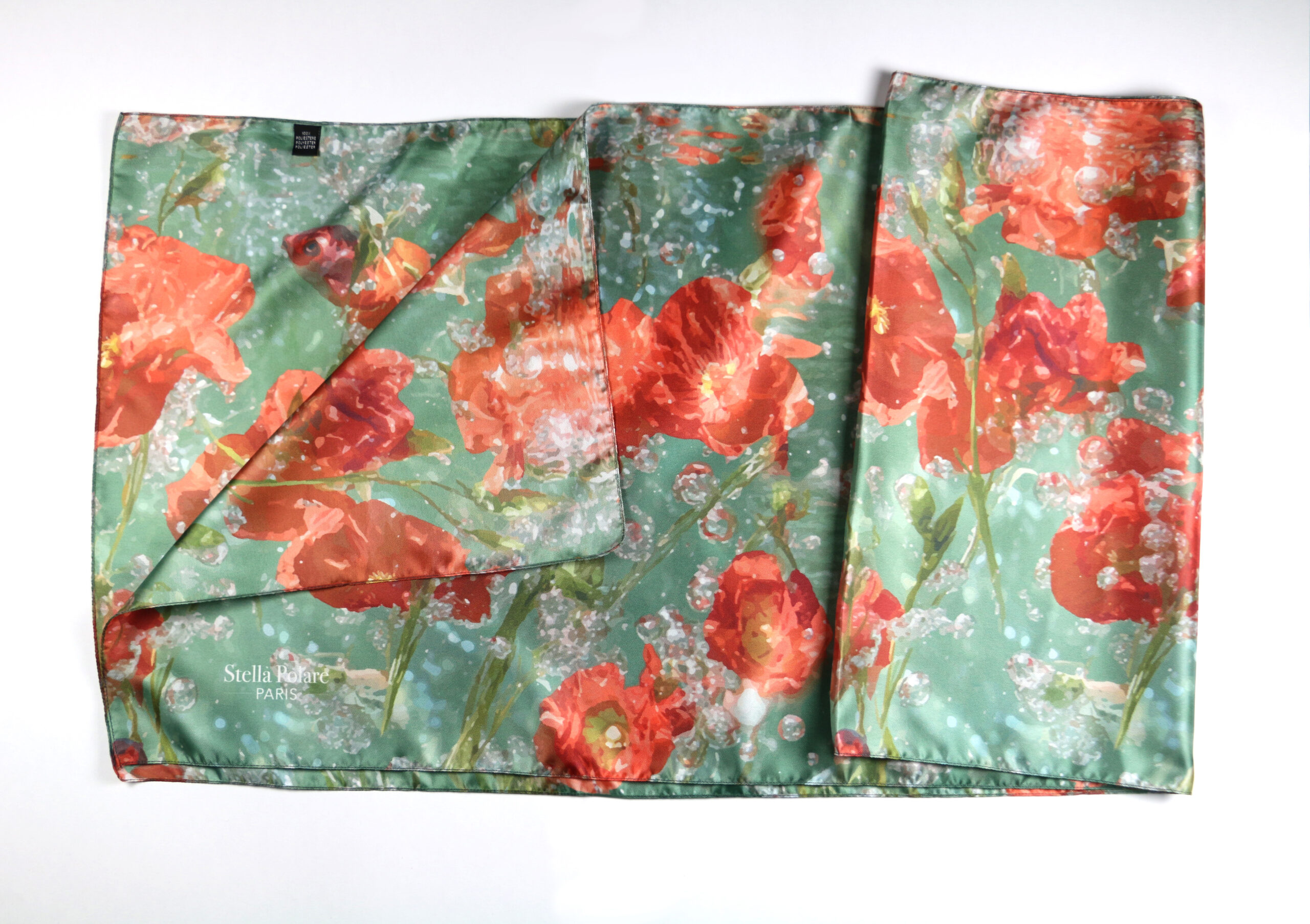 Polyester Scarf “Poppy N4” – Red & Green, Exclusive Print