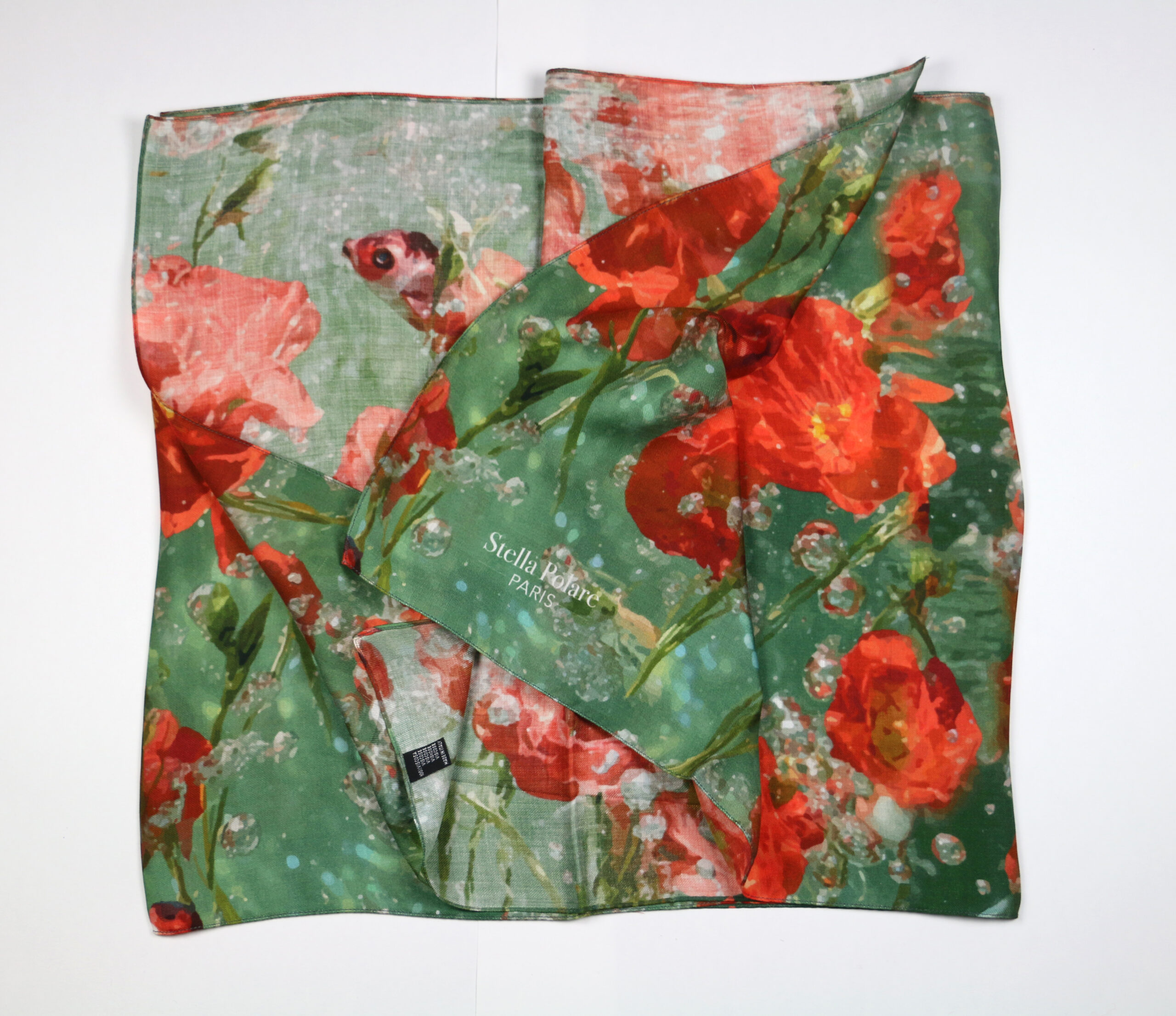 Viscose Scarf “Poppy N4” – Red & Green, Exclusive Print