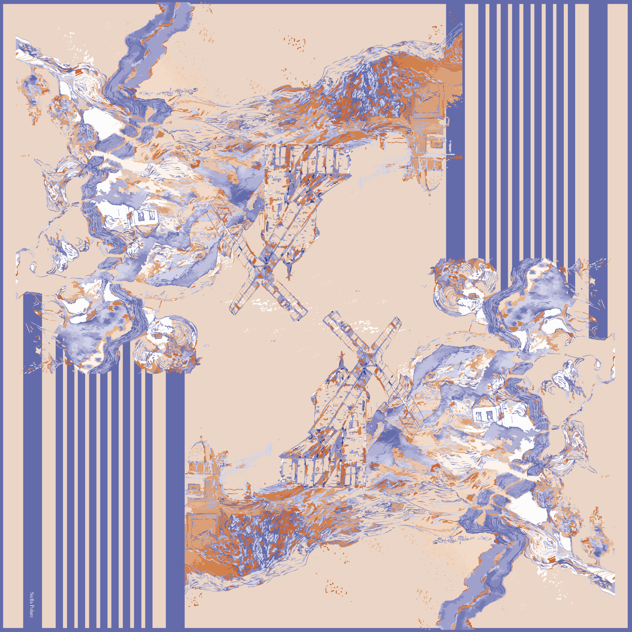 Peach silk scarves Stella Polare “Ode à Puteaux” created by Stella Polare Artiste in Paris.
